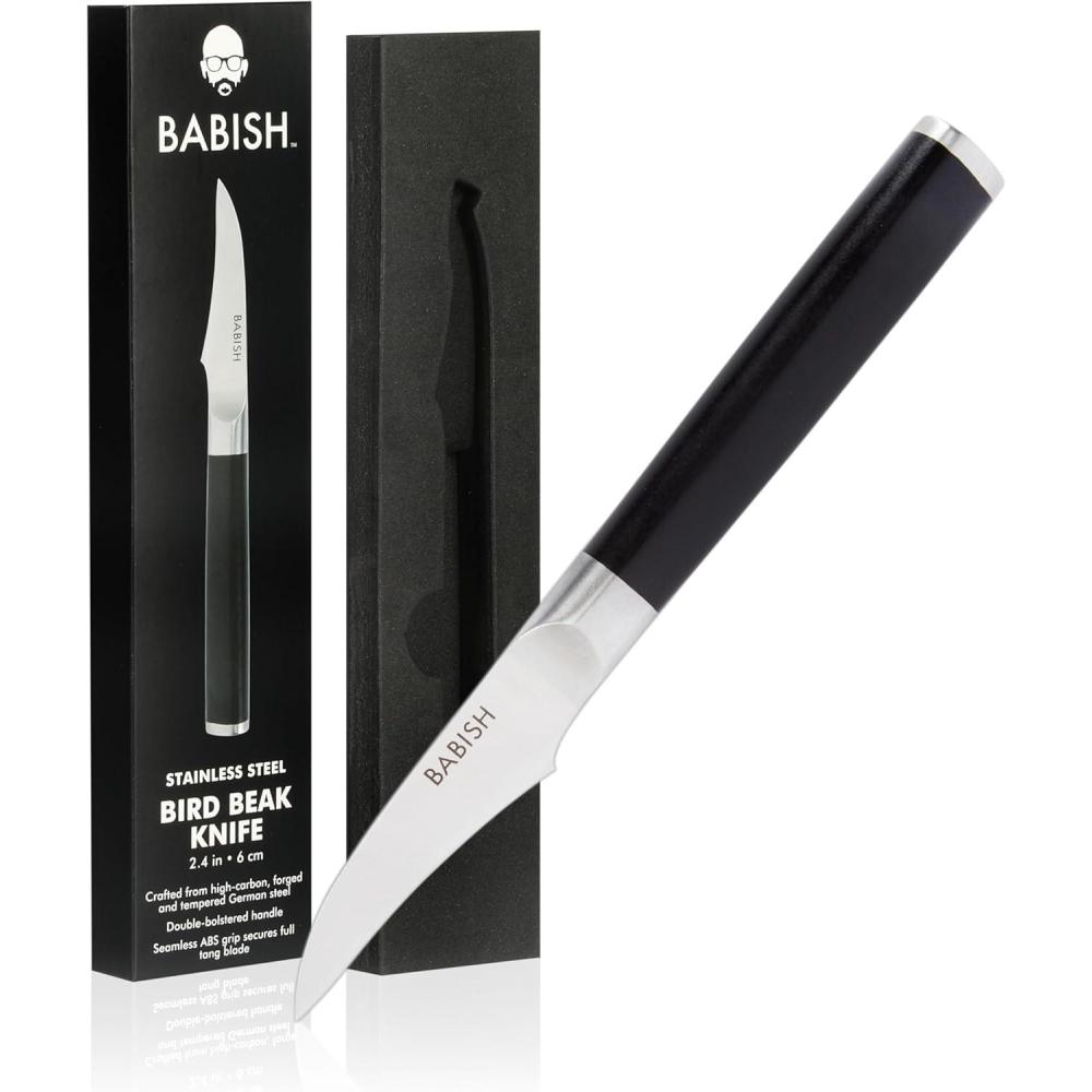 Babish 2-Piece Carving Knife and Fork Set – 8-Inch Stainless Steel Carving Knife with 6.5-Inch Fork – Precision Cutlery for Turkey, Roast, and Meat Carving – Ergonomic ABS Handles(Bird’s Beak Knife – High Carbon Stainless)