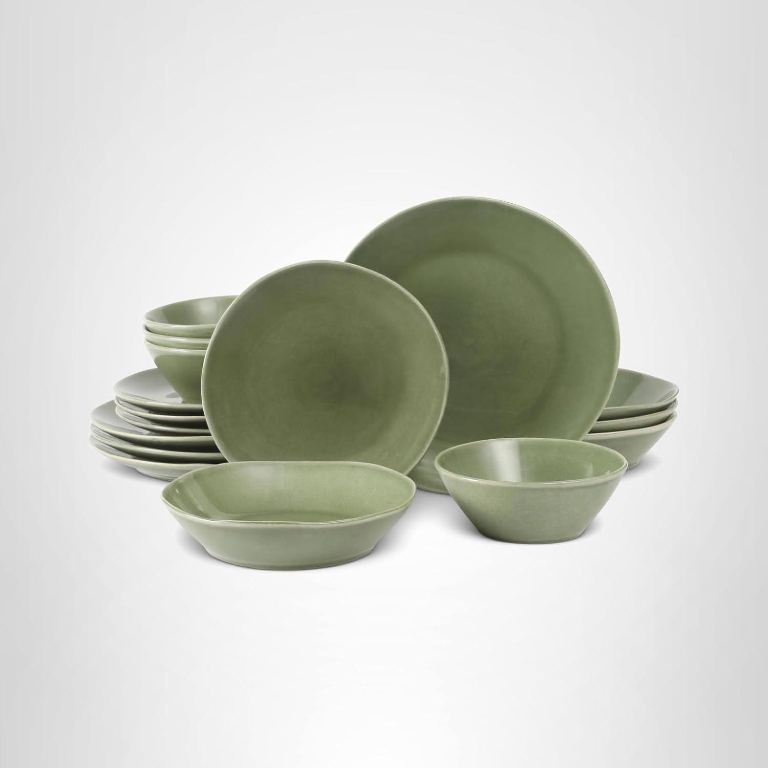 Bloomhouse – Two Time Oprah’s Favorite Things WInner – Santorini Mist 4-Piece 8.6-Inch Terracotta Pasta Bowl Set – Moonstone White, Reactive Glaze Round Shallow Walled Dinner & Serving Bowls(Cardamom Green)