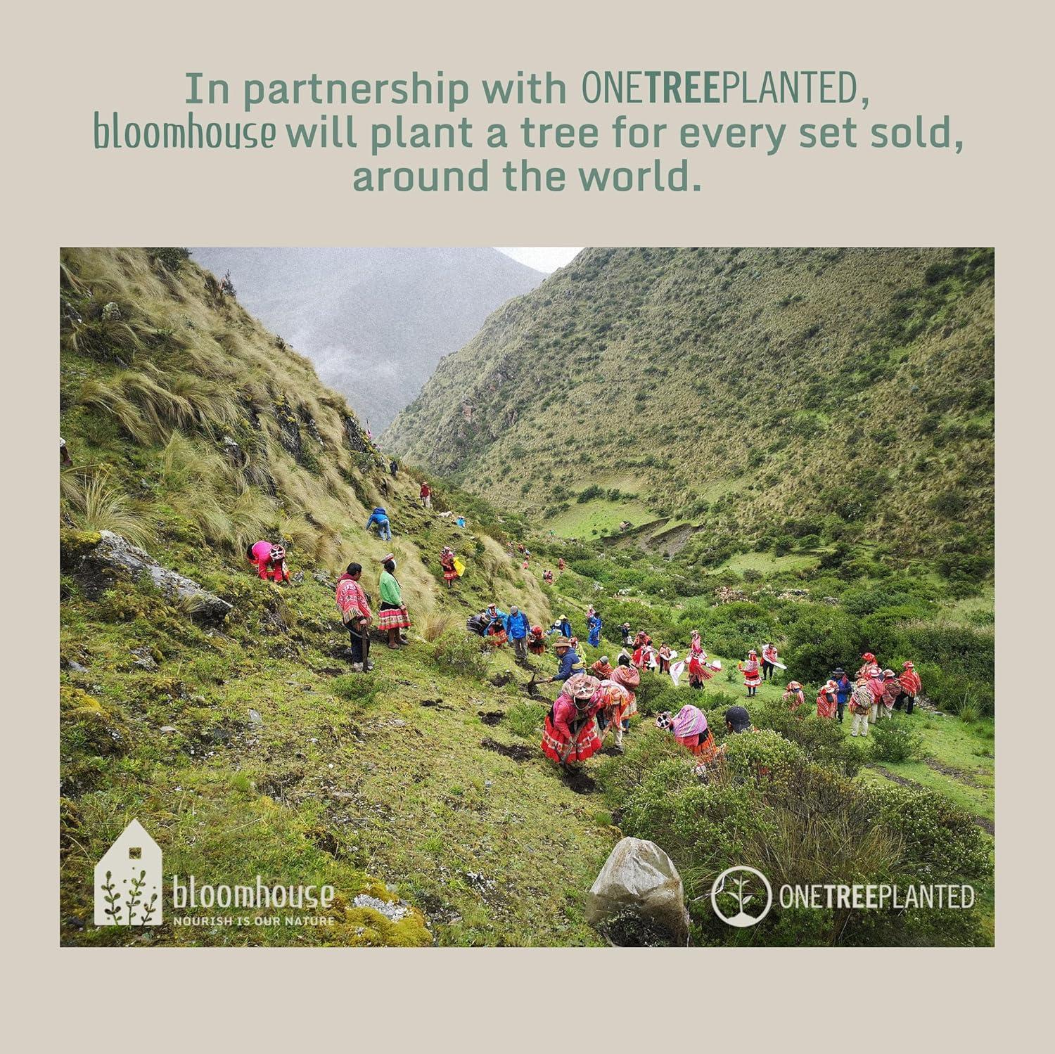 ONE TREE PLANTED PER SET SOLD: In partnership with One Tree Planted, bloomhouse will plant a tree around the world for every set sold, keeping our planet healthy and thriving while encouraging acts of kindness and growth.