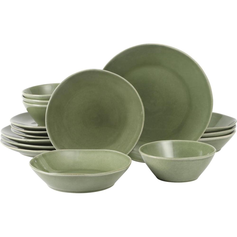 image:imageBloomhouse  Two Time Oprahs Favorite Things WInner  Santorini Mist 4Piece 86Inch Terracotta Pasta Bowl Set  Moonstone White Reactive Glaze Round Shallow Walled Dinner amp Serving BowlsCardamom Green