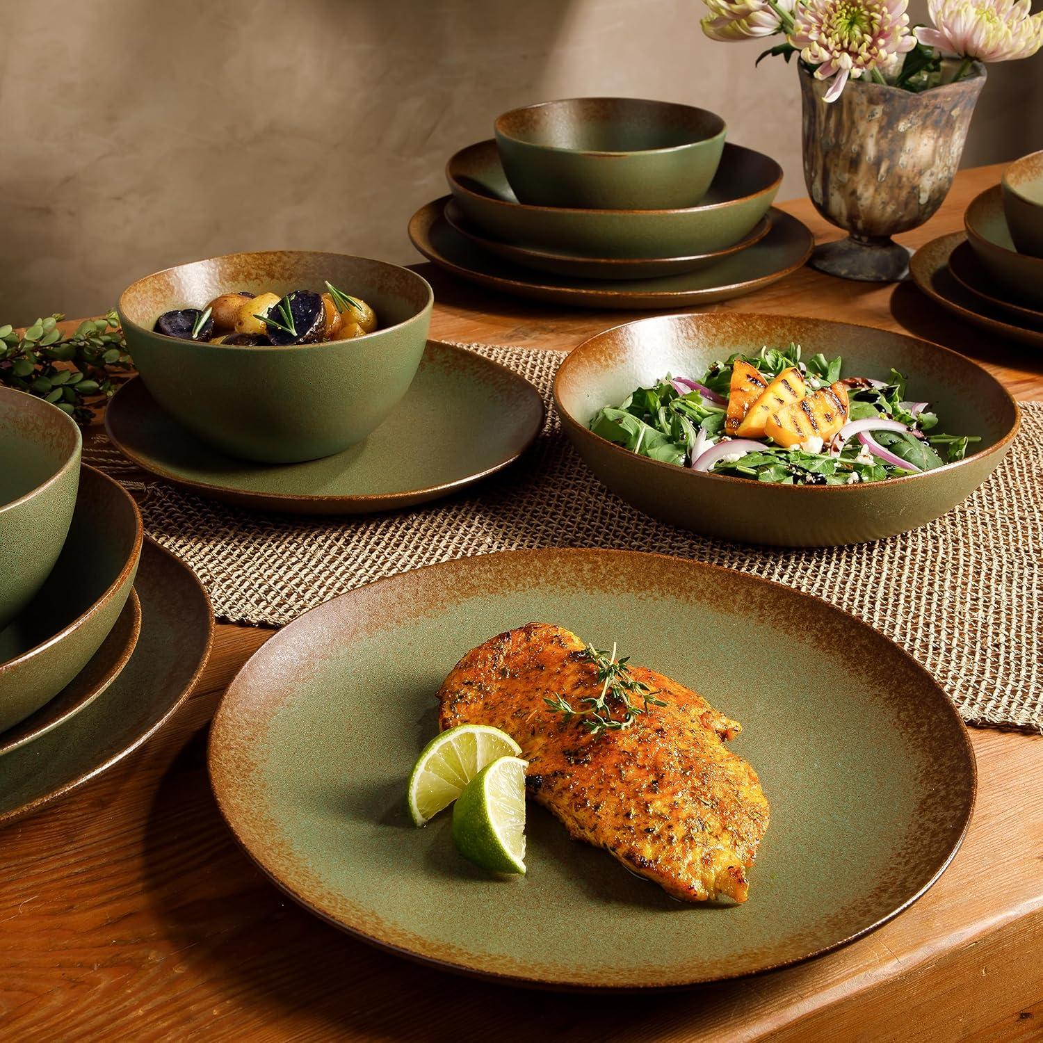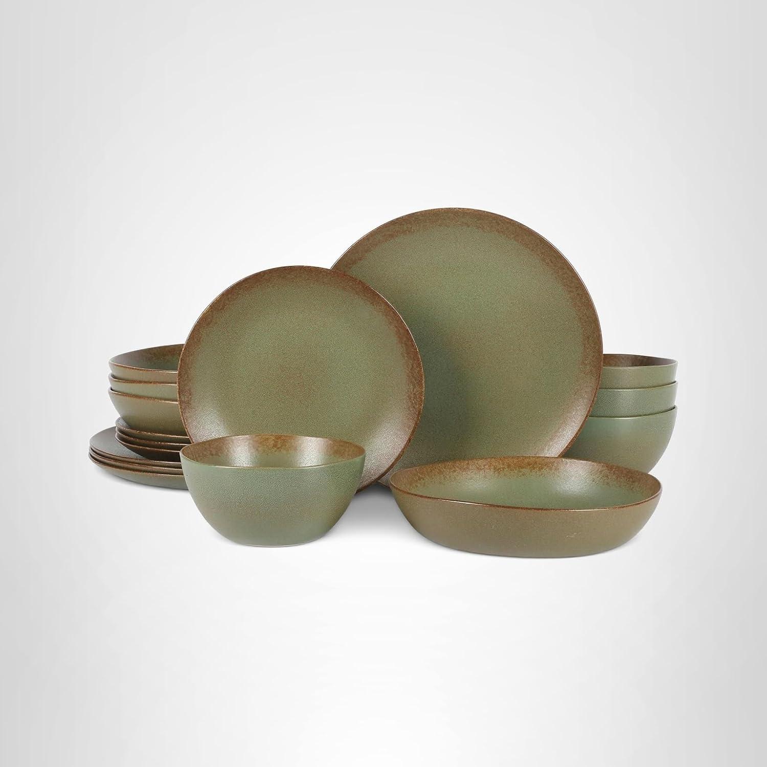 Bloomhouse – Two Time Oprah’s Favorite Things WInner – Santorini Mist 4-Piece 8.6-Inch Terracotta Pasta Bowl Set – Moonstone White, Reactive Glaze Round Shallow Walled Dinner & Serving Bowls(Cardamom Green)