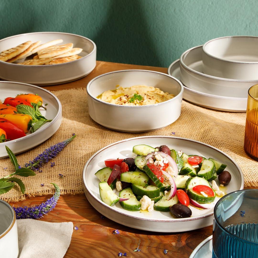 Bloomhouse – Two Time Oprah’s Favorite Things WInner – Santorini Mist 4-Piece 8.6-Inch Terracotta Pasta Bowl Set – Moonstone White, Reactive Glaze Round Shallow Walled Dinner & Serving Bowls(Marble Dawn Cream)
