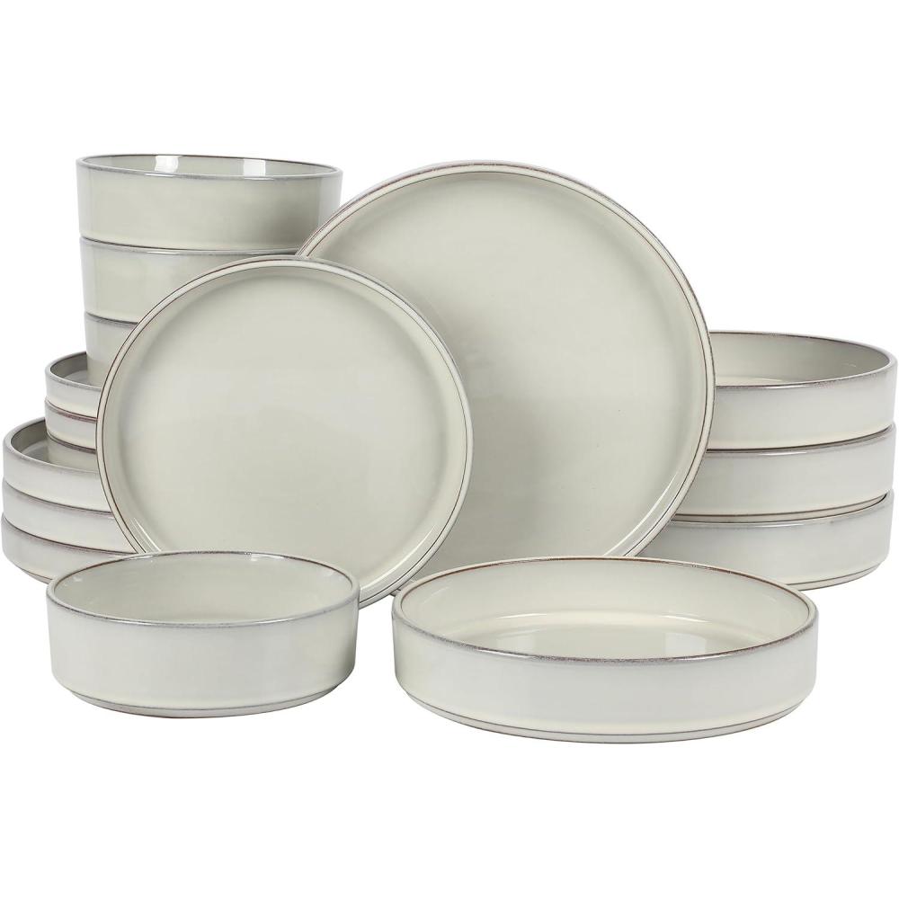 image:imageBloomhouse  Two Time Oprahs Favorite Things WInner  Santorini Mist 4Piece 86Inch Terracotta Pasta Bowl Set  Moonstone White Reactive Glaze Round Shallow Walled Dinner amp Serving BowlsMarble Dawn Cream