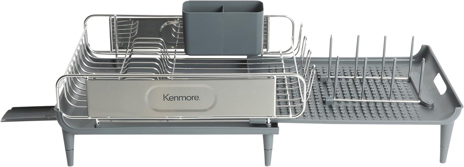 Kenmore Loxdell Expandable Full Size Rust Resistant Dish Rack with Drain Board and Flatware Caddy