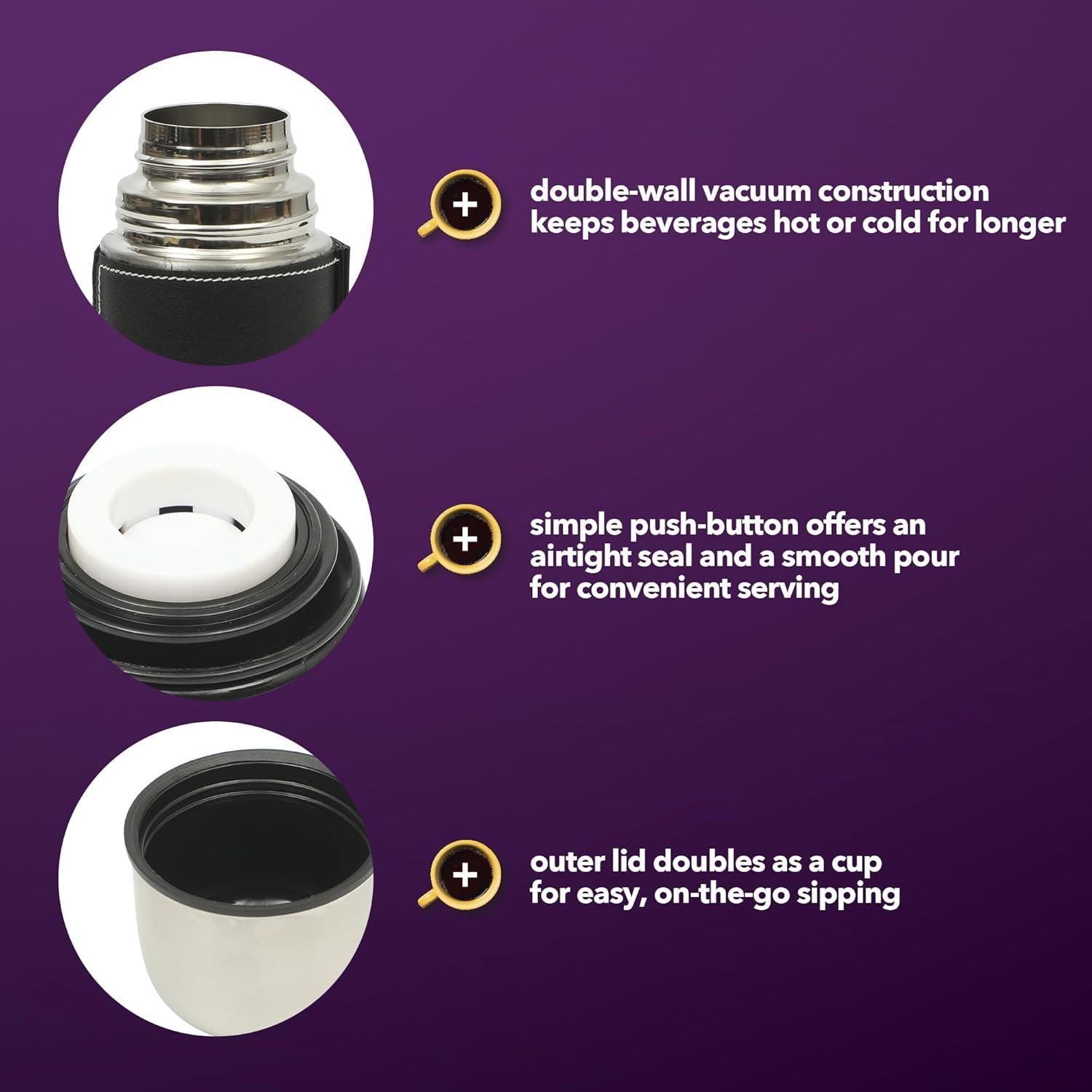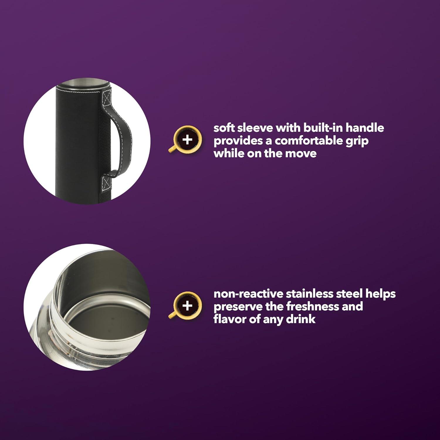 The Mr. Coffee Javelin 2-piece Double-Wall Stainless Steel Travel Bottle and Mug Set is the perfect duo to take any drink on the go. The set offers one slim but versatile thermal bottle and one perfectly-sized mug to promote all-day hydration and an active, healthy lifestyle. Each portable beverageware comes with a leak-resistant lid with special features designed for easy serving and sipping. Suitable to fit into most standard cup holders, the Mr. Coffee Javelin Set is crafted from non-reactive, double-wall stainless steel to keep your coffee hot or your breakfast smoothie cold. Take your drink with you in the car, at the gym or at work to keep your fresh and hydrated wherever you go. Hand wash only.