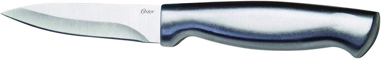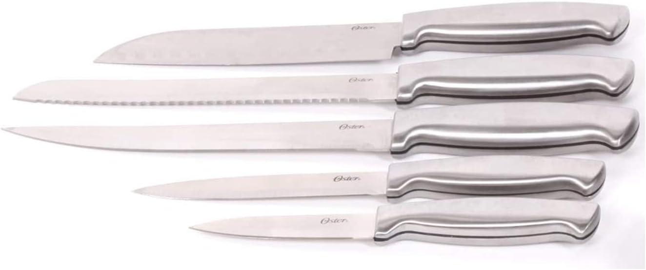 Designed to make food prep and cooking an easy and enjoyable experience, the Oster® Baldwyn collection offers handy kitchen tools and gadgets for everyday use. The Oster® Knife Set with Magnetic Stand is an easy upgrade on how to store and display your essential knives in your kitchen. From cutting and cubing meat or carrots to mincing herbs or garlic, preparing ingredients for any recipe is a breeze with these high-carbon stainless steel knives. Each blade resists rust and corrosion, while providing sharpness and precision to slice and craft ingredients easily. Stamped construction delviers a lightweight feel for effortless control and precision. Unlike bulky wood blocks, the sleek magnetic stand complements modern kitchens while showcasing each knife’s lustrous finish and sharp spine. Knives stay securely in place for both style and safety. Hand wash only.